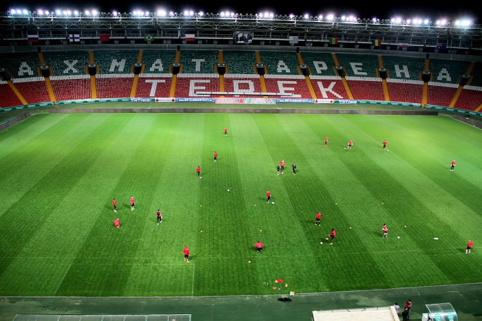 Накануне матча 28 тура РОСГОССТРАХ Чемпионата России с «Тереком» основной состав «Амкара» провел тренировку на «Ахмат Арене». Занятие началось в 22:00 и продлилось чуть более часа. В Грозном в вечернее время установилась довольно теплая погода – «плюс» 15 градусов.
