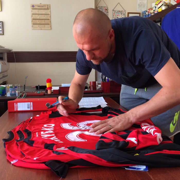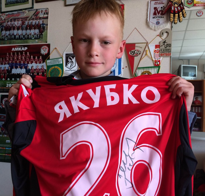 Счастливые обладатели карточек с автографами футболистов начали получать свой долгожданный приз – футболку Мартина Якубко с его настоящим автографом.