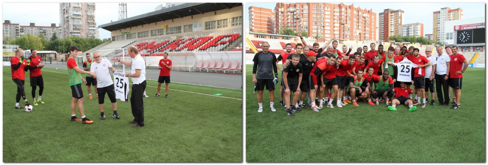 Накануне у команды был выходной, который она получила после матча с «Анжи». Сегодня футболисты собрались на вечернюю тренировку. Вначале игроки и тренеры поздравили с днем рождения полузащитника Михаила Костюкова. Новобранцу «Амкара» исполнилось 25 лет и, по традиции, из рук главного тренера и генерального директора он получил именную футболку, на которую вместо номера нанесен возраст.