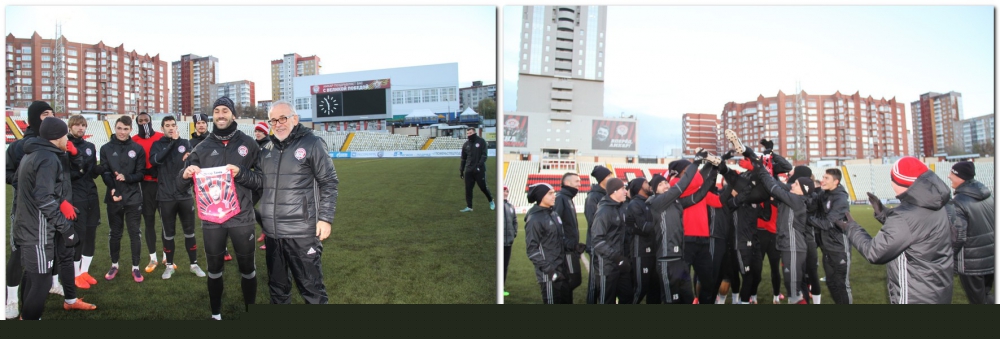 Но вначале команда поздравила своего капитана - Петар Занев отмечает сегодня свой 31 день рождения. Из рук главного тренера он получил фирменный вымпел со своим изображением. Вручение такого подарка стало доброй традицией в Клубе.
